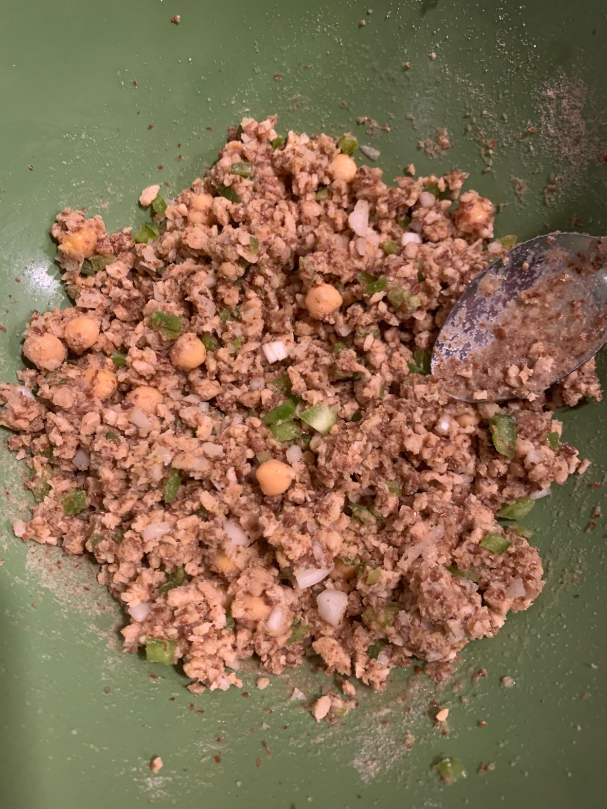 OK so take all these ingredients and mix them up. You may have to adjust the flaxseed and psyllium husk to get to a good consistency where you can create a patty.