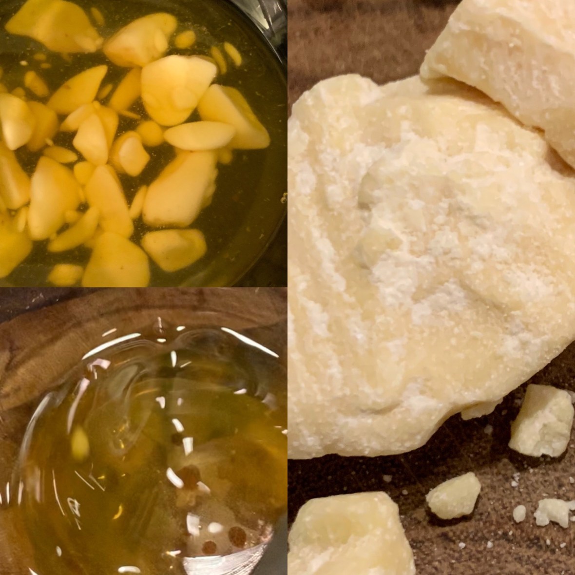 First melt the cocoa butter in a bowl over boiling water. It melts quickly so you bring the water up to a boil, turn off the heat, drop on the butter shavings and stir. Next I added in about the same ratio of the cocoa powder, about 1.5 tablespoon agave and a pinch of salt.