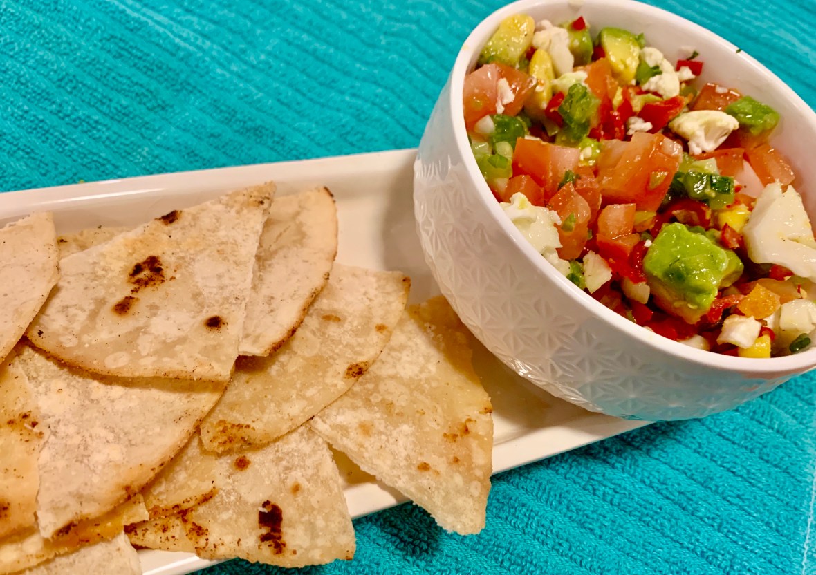 Next, I quickly sautéed my cashew wraps in a tiny bit of algae oil to make the chips. 2 wraps was all I needed!