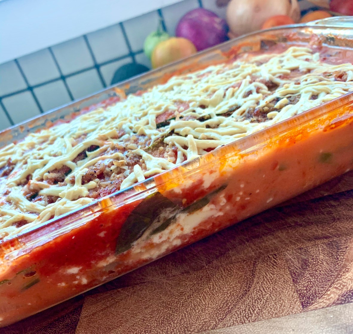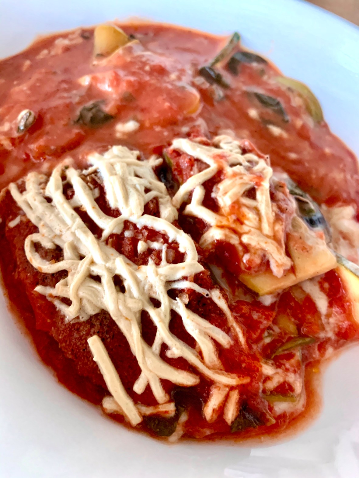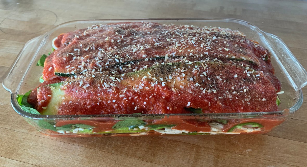 You’d never know this wasn’t a pasta lasagna! I got the thickness of the zucchini slices just right, about 1/8″.