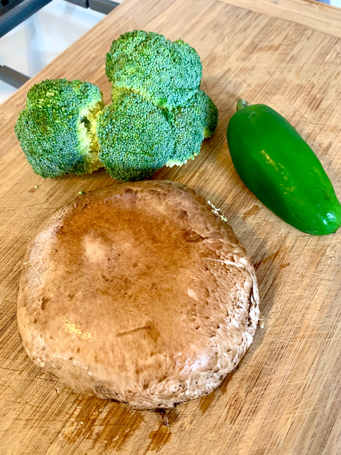 And, mushrooms, broccoli and jalapeño peppers are the earthy flavors I’m going for!