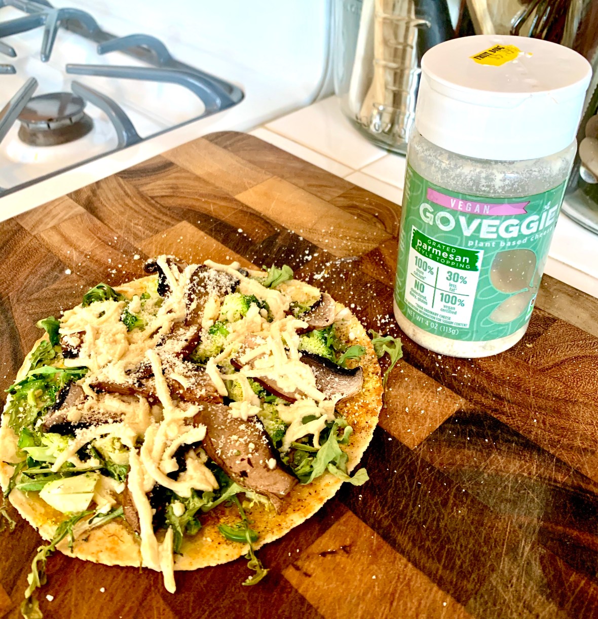 Pop this is the oven at 425 degrees for 12 minutes. When it’s done sprinkle some GoVeggie Parmesan cheese and enjoy!