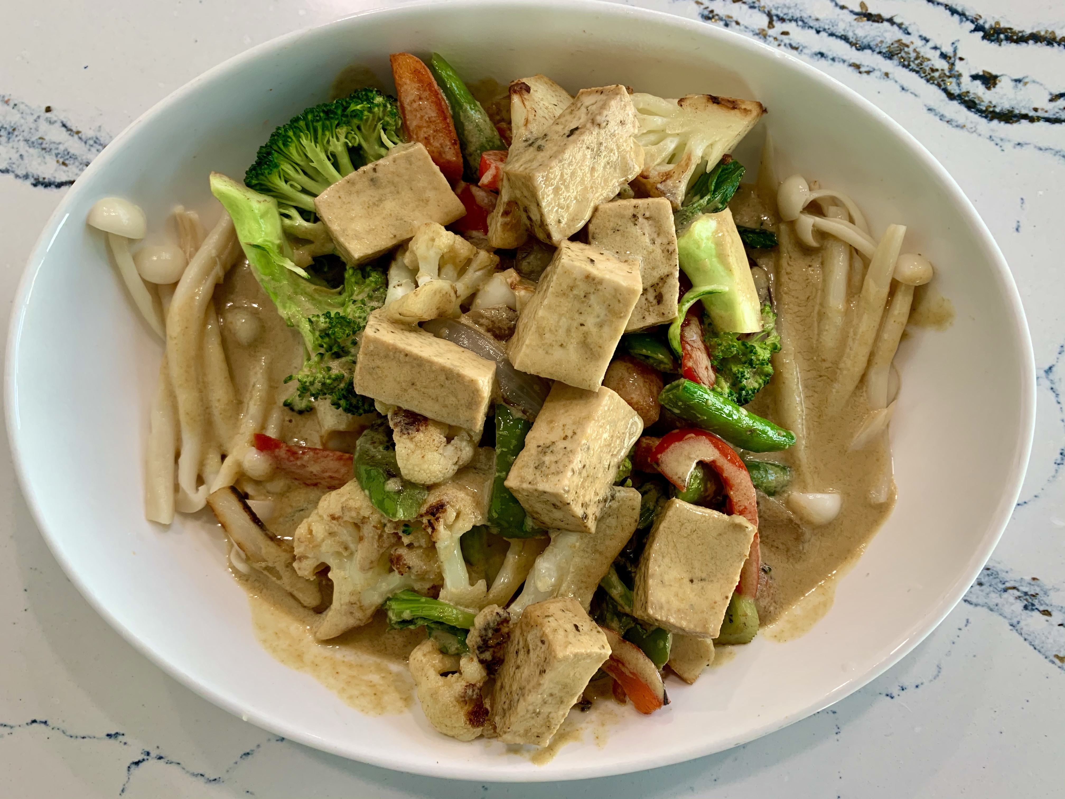 Next just plate all of the ingredients and pour a heaping serving of the Thai curry sauce on top. I ate the whole thing and literally licked the plate! 🙂