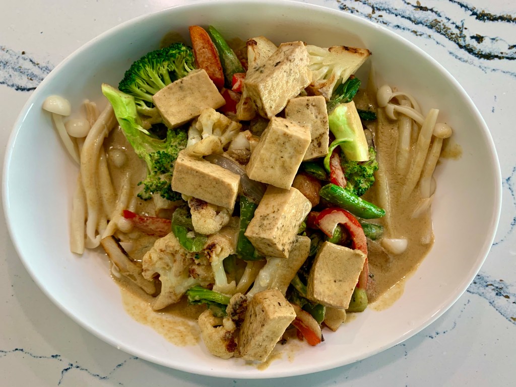 This recipe was so simple and super fast, especially because I had Thai Kitchen green curry paste on hand! You gotta try it!