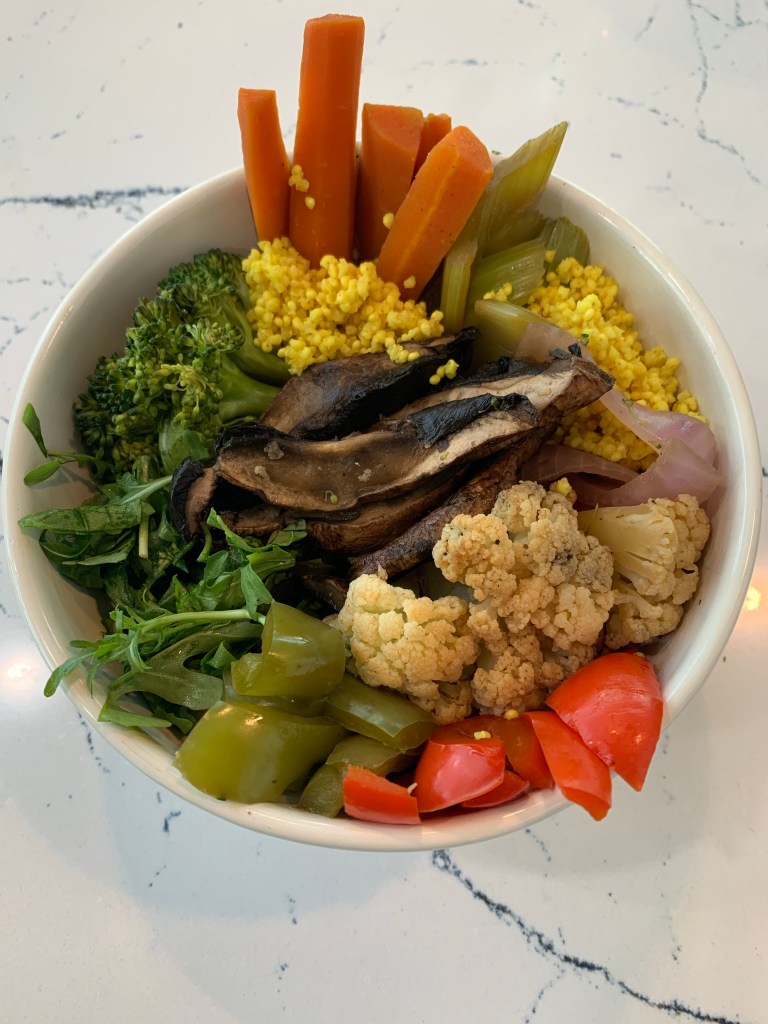 For an extra burst of flavor, vitamins and minerals – add some spices to the millet as it cooks, for this bowl I used garlic, turmeric and onion powder.